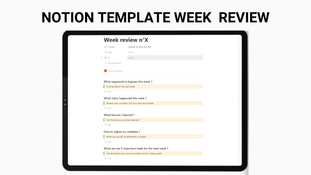 Notion template "Weekly review"